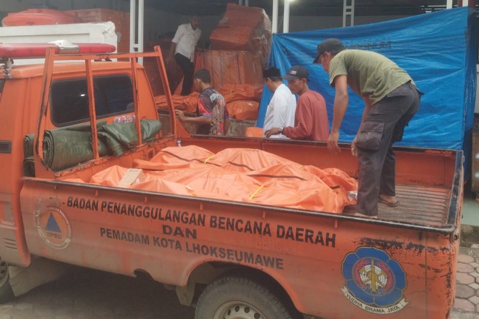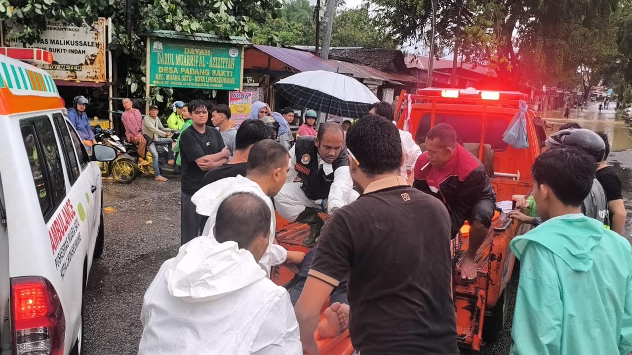 KBRN, Lhokseumawe : Seratusan Masyarakat di Kecamatan Blang Mangat, Personil TNI/Polri serta Komponen lainnya dari Instansi Pemerintah Kota Lhokseumawe, Jum’at (23/11/2018) mengikuti Apel Siaga Bencana dan Simulasi Bencana Banjir yang digelar BPBD Kota Lhokseumawe.