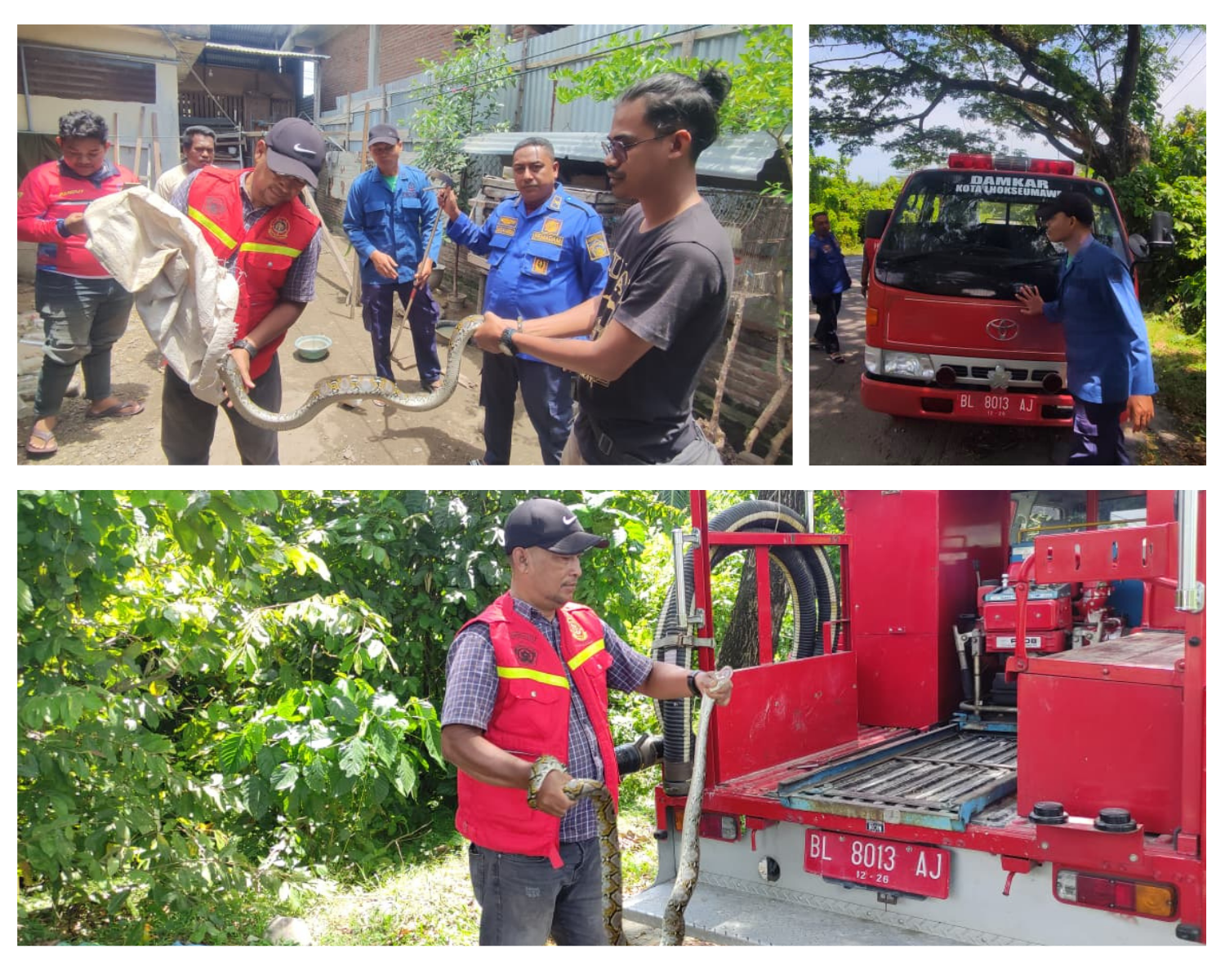 Informasi di terima oleh Damkar BPBD Lhokseumawe dari masyarakat pada pukul 12.00 WIB. Bahwa terdapat satu ekor ular piton di salah satu rumah warga di Desa Blang Pulo Kec. Muara Satu Kota Lhokseumawe, Setelah menerima informasi tersebut petugas DAMKAR Kota Lhokseumawe langsung bergerak menuju ke lokasi kejadian dengan mengerahkan 1 unit Mobil Damkar.