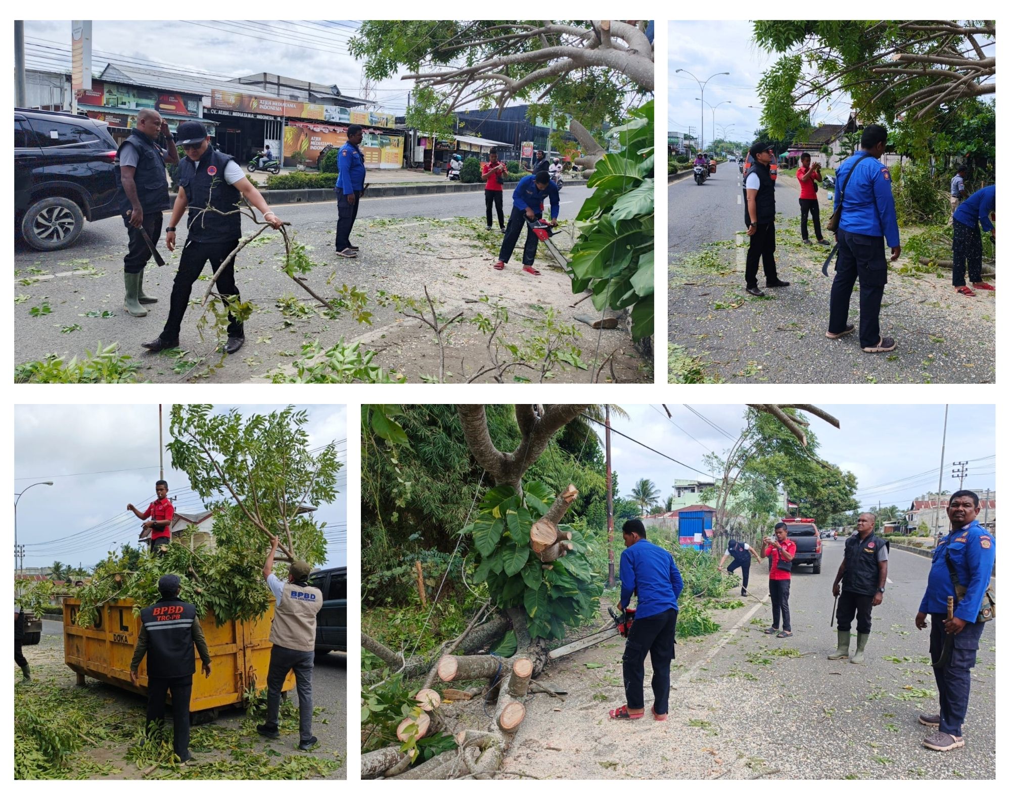 TRC BPBD Kota Lhokseumawe Regu B & DAMKAR BPBD Kota Lhokseumawe setelah menerima informasi langsung bergerak menuju ke lokasi kejadian pohon tumbang dengan mengerahkan 1 unit mobil l300 dengan membawa peralatan mesin Chainsaw sebagai sarana pemotong kayu. Setiba dilokasi kejadian petugas langsung melakukan penanganan pohon tumbang